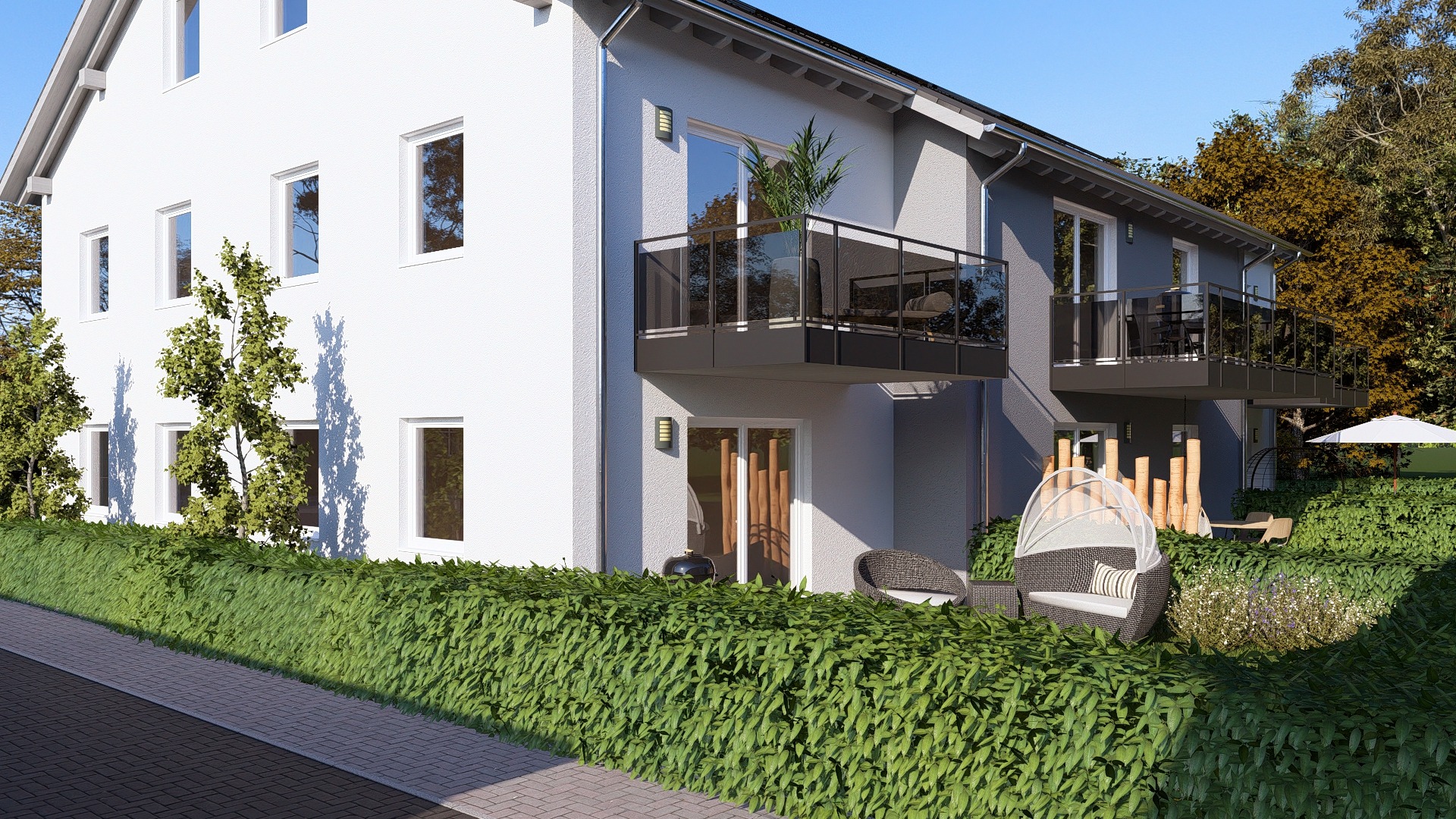 - Bei den Erdgeschosswohnungen großzügige Gartenbereiche im Preis inklusive