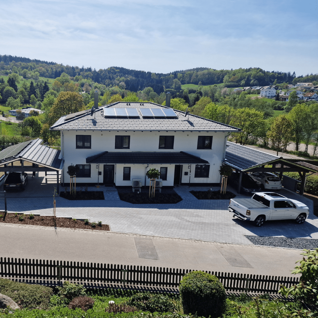 Bau eines Doppelhauses in Falkenstein. Ebenso Bau von 12 Eigentumswohnungen in Pösing und Nittenau, sowie Fertigstellung der Wohnanlagen in Roding und Simbach am Inn